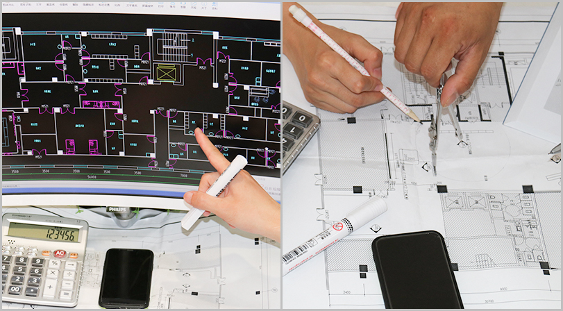 每承接一個(gè)工程,公司都會(huì)派出經(jīng)驗(yàn)豐富的技術(shù)團(tuán)隊(duì)上門勘察、實(shí)地測量,提供工程設(shè)計(jì)方案。測量各個(gè)房間尺寸及造型情況,做好記錄,做到心中有數(shù)。
